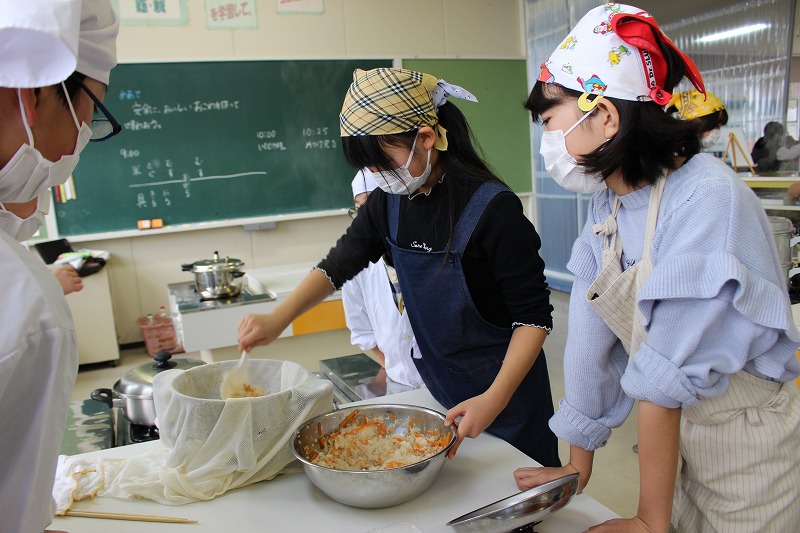 すり鉢でごりごりしてもみすりし、箕に入れてもみ殻を風で飛ばし、