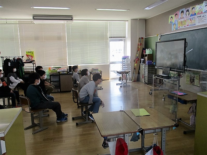 また、今日は「春休みのくらし」の指導の日。こちらは、各教室をTeamsでつなぎ、3年教室から滝澤教諭が全校生に指導しました。
